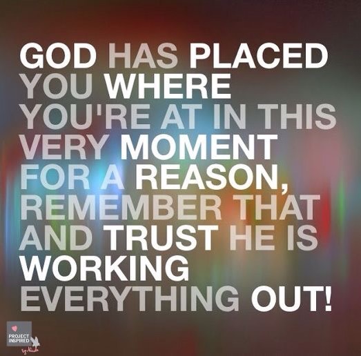 A month ago I took a step of faith and moved out into my own place. I had a goal to make that move in June. But, my friend who had helped me in time of need in the past was in need. So I leaped on out to start rent and utilities of which I had not had in 4 years. A month into this new adventure I find myself off work with a very painful injury. The pain has caused a lot of emotional stress and I’ve had to push forward to keep my eyes on God. I have missed a week of work so far. It’s at this point I am realizing I wasn’t trusting God. I was trusting me. Trusting me to work, pay for my bills, drive myself, clean my own house, and etc….
