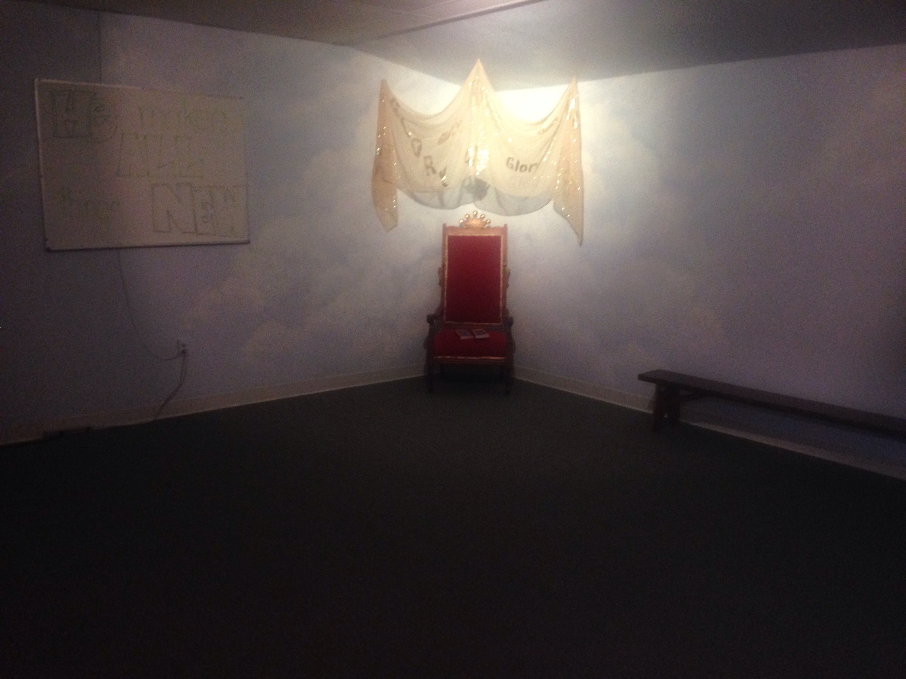 I went up yesterday to look at my room. It’s huge and it’s a place to regroup and retreat for sure. It’s quiet, it’s shut off from the rest of the world. It’s across from another room called a Comm room. A room that is painted with sky blue clouds and a throne set up up to remind you that The King of Kings is present with you. A WAR ROOM!!