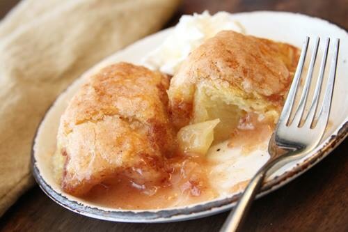 Peel and Core apples. Cut each apple into 8 slices each. Roll each apple slice in a crescent roll. Place in a 9×13 buttered pan.