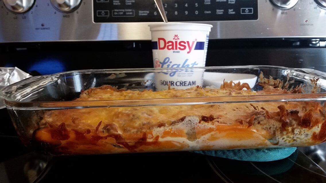 Spray baking dish with cooking spray and lay peppers evenly along the bottom of baking dish.